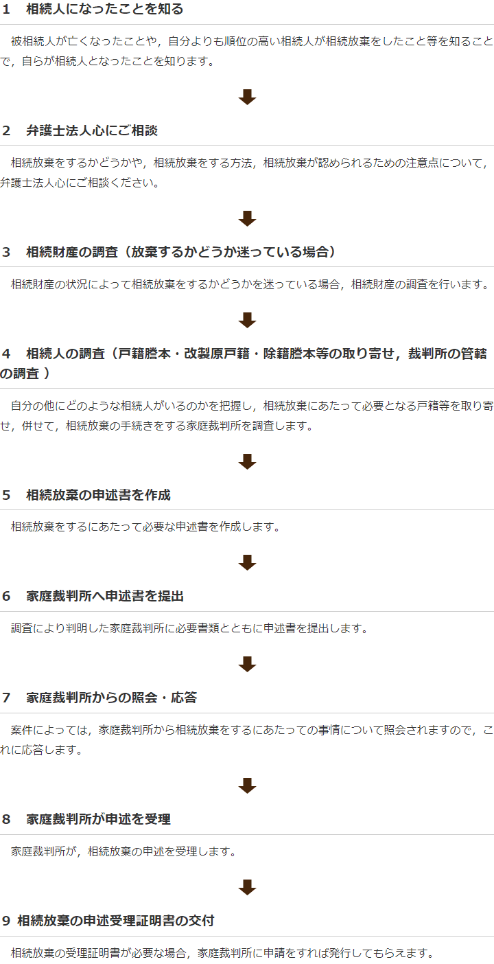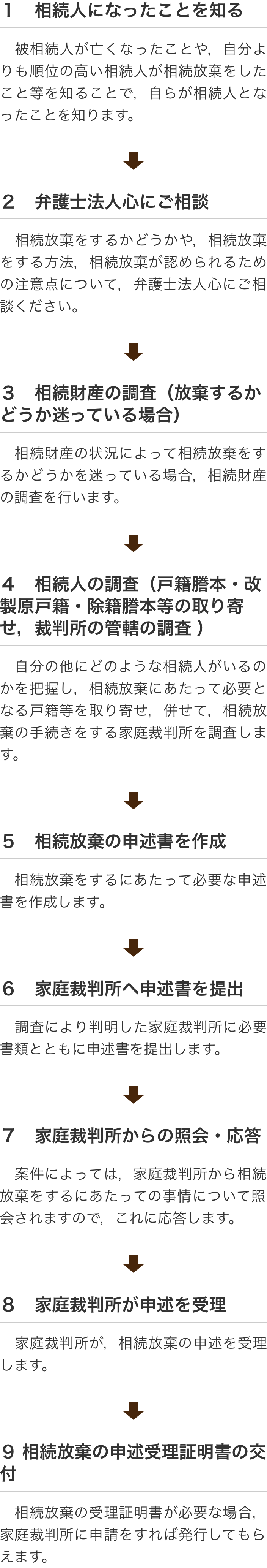 トップ相続放棄の流れ 階層構造▼ 相続放棄の流れ 受付時間 平日 9時~21時、土日祝 9時~18時 夜間・土日祝の相談も対応します (要予約) 所在地 〒286-0033 千葉県成田市花崎町801-1京阪成田ビル6F 0120-41-2403 お問合せ・アクセス・地図